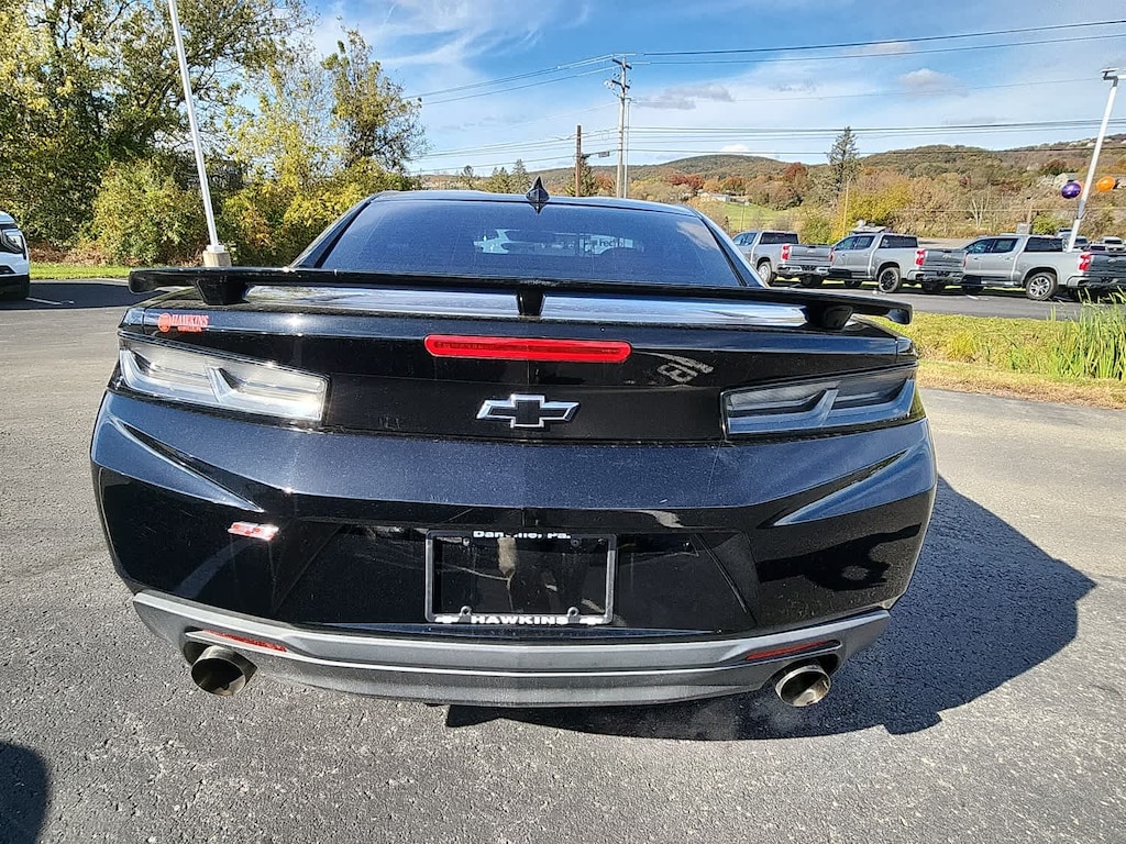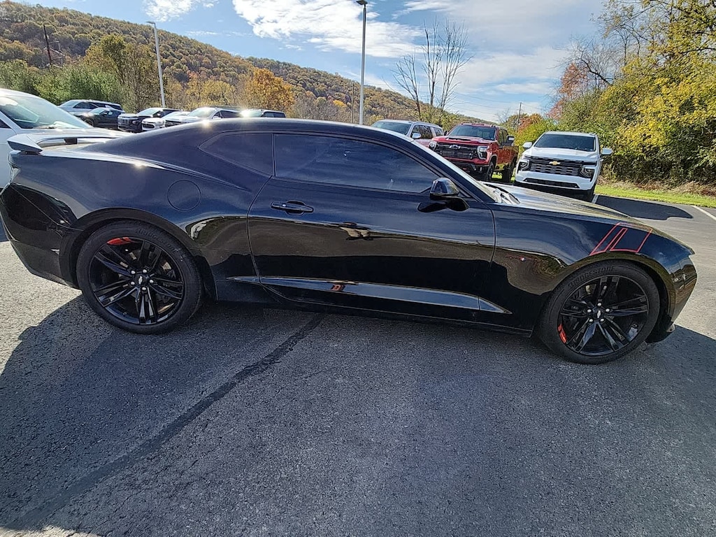 includes (RIK) Black front and rear bowtie emblems, LPO, (CG6) Camaro emblem, (RZB/RZ9) Red accent grille, LPO, (5LP) Hash Mark Decal, LPO, (5K2) Decklid blackout decal, LPO, (SCY) Dark finish tail lamps, LPO, Black outside rearview mirrors, (SRI/58E) 20" Black-painted aluminum wheels with Red accents and (VYW) premium carpeted floor mats with Camaro logo, LPO (Includes (RZ9) SS Lower grille with Red accent grille insert, LPO and (58E) 20" x 8.5" front and 20" x 9.5" rear Black-painted aluminum wheels with Red accents. SEATS, LEATHER-TRIMMED WITH SUEDED INSERTS FRONT BUCKET, RECARO PERFORMANCE, includes Bluetooth® streaming audio for music and select phones; voice-activated technology for radio and phone; featuring Android Auto® and Apple CarPlay® capability for compatible phone and Shop with the ability to browse, select and install apps to your vehicle. Apps include Pandora, iHeartRadio, The Weather Channel and more (STD), (455 hp [339.3 kW] @ 6000 rpm, 455 lb-ft of torque [614.3 N-m] @ 4400 rpm) (STD), (Includes Active Rev Matching.) (STD). Rear Spoiler, Remote Trunk Release, Keyless Entry, Electronic Stability Control, Alarm.