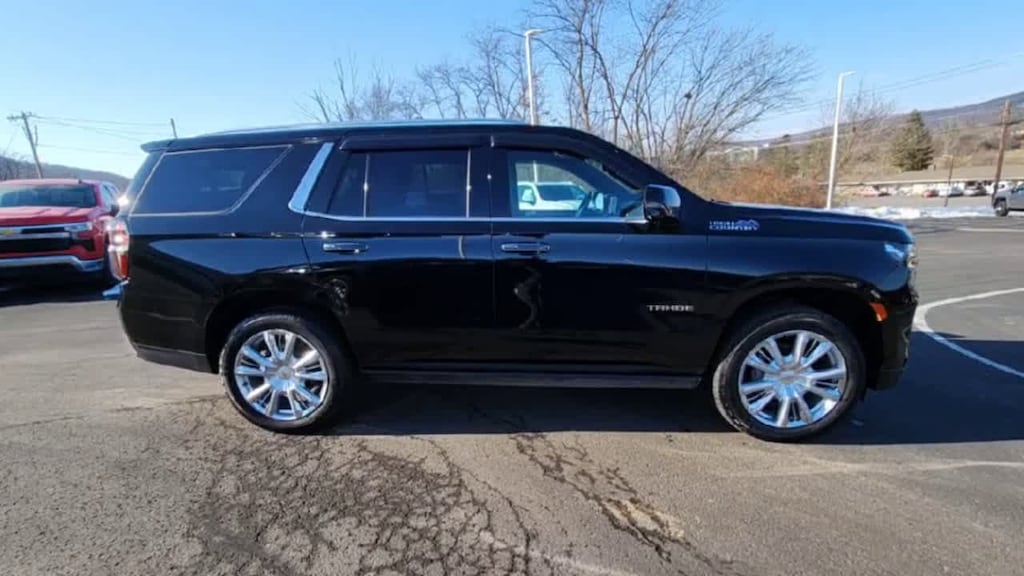 HIGH COUNTRY DELUXE includes (C3U) Panoramic power sunroof, (NHT) Max Trailering Package, (B3L) power-retractable assist steps with perimeter lighting and (F47) Air Ride Adaptive suspension, AUDIO SYSTEM, CHEVROLET INFOTAINMENT 3 PREMIUM SYSTEM WITH GOOGLE BUILT-IN COMPATABILITY (select service plan required, terms and limitations apply), including nav capability, 10.2" diagonal HD color touchscreen, includes multi-touch display, AM/FM stereo, Bluetooth® streaming audio for music and most phones; featuring wireless Apple CarPlay® and wireless Android Auto® capability for compatible phones, advanced voice recognition, in-vehicle apps, personalized profiles for infotainment and vehicle settings (STD), ENGINE, 6.2L ECOTEC3 V8 with Dynamic Fuel Management, Direct Injection and Variable Valve Timing, includes aluminum block construction (420 hp [313 kW] @ 5600 rpm, 460 lb-ft of torque [624 Nm] @ 4100 rpm) (STD), TRANSMISSION, 10-SPEED AUTOMATIC electronically controlled with overdrive, includes Traction Select System including tow/haul (STD), ADVANCED TRAILERING PACKAGE includes (PZ8) Hitch View, (JL1) trailer brake controller and (UET) Smart Trailer Integration Indicator Also includes (UKV) Extended Side Blind Zone Alert.). Privacy Glass, Keyless Entry, Remote Trunk Release, Child Safety Locks, Steering Wheel Controls.