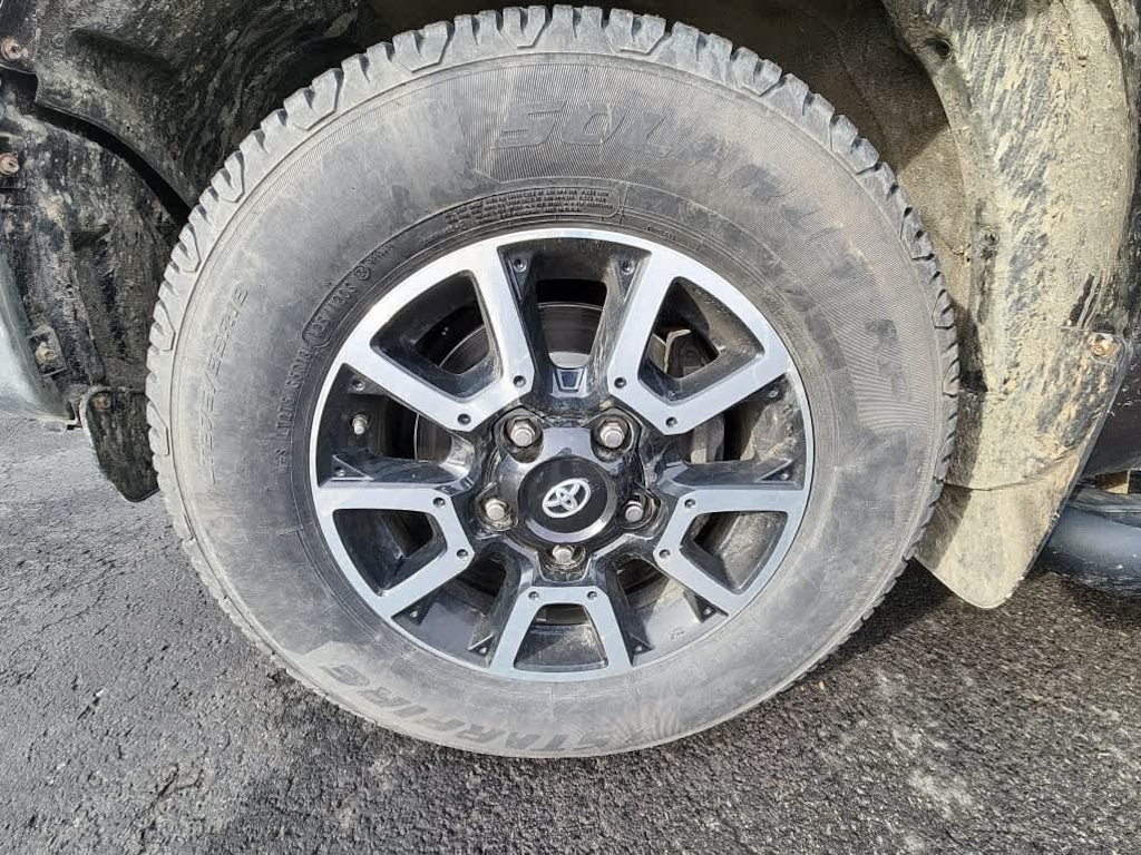 Blind Spot Monitor w/Rear Cross Traffic Alert, Color-Keyed Rear Bumper, Front & Rear Parking Assist Sonar, Glass Breakage Sensors (GBS), Radio: Entune Premium w/JBL Audio & Navigation, AM/FM/HD Radio, CD player MP3/WMA playback capability, integrated navigation system, AM/FM cache radio, 12 JBL speakers including subwoofer and amplifier, 7" high-resolution touch-screen display w/split-screen, auxiliary audio jack, USB 2.0 port w/iPod connectivity and control, Gracenote album cover art, HD predictive traffic and Doppler weather overlay, Bluetooth® hands-free phone capability w/advanced voice recognition, phone book access and music streaming and Siri Eyes Free, Entune App Suite, Destination Search, iHeartRadio, MovieTickets.com, OpenTable, Pandora, Yelp, Facebook Places, Slacker Radio and, POWER TILT & SLIDE MOONROOF W/SLIDING SUNSHADE, BRUSHED STAINLESS STEEL STEPBOARDS, Tires: P275/65R18 All-Terrain, BF Goodrich, Wheels: 18" x 8J Split 5-Spoke TRD Off Road Alloy, black accents, Engine & Fuel Tank Skid Plates, LED Headlights w/Smoked Housings, Bedside TRD Off Road Decal, TRD Off Road Floor Mats, Trail-Tuned Bilstein Shock Absorbers. Keyless Entry, Privacy Glass, Child Safety Locks, Steering Wheel Controls, Electronic Stability Control.