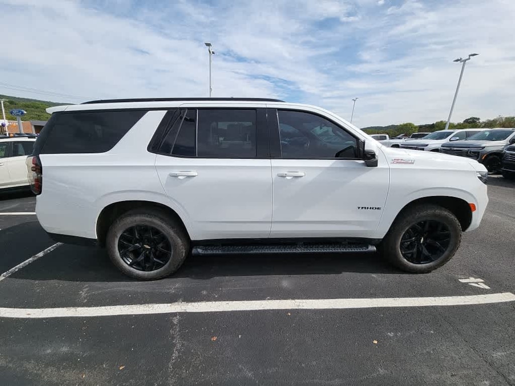 Leather Seats, Third Row Seat, Navigation, Power Liftgate, Rear Air, Cooled Driver Seat, Running Boards, Premium Sound System, Satellite Radio, Onboard Communications System, Trailer Hitch, Remote Engine Start, Dual Zone A/C, WiFi Hotspot, Lane Keeping Assist Chevrolet Z71 with Summit White exterior and Jet Black interior features a 8 Cylinder Engine with 355 HP at 5600 RPM*.